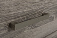 Create your ideal bedroom ambiance with the fresh, casual style of this transitional bedroom set. It features engineered wood construction with durable laminate surfaces, creating a stylish look with its brown oak wood grain finish. The set is clean lined, delivering a tall, squared headboard with foam padding and tan upholstery, creating the perfect place for lounging and reclining. The bed is complete with a low footboard and rails, offering a complete look that remains open and airy, great in small and large bedrooms alike. Storage pieces add ample drawer space and roomy tops, perfect for creating organization and offering a place for a personal touch of decor.