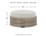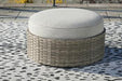 This cool, casual outdoor cushioned ottoman will raise the comfort level and visual appeal of your outdoor living space. Made of handwoven wicker in easy-going beige tones, the ottoman blends beautifully into your lanai or pool and patio area with a comfy cushion wrapped in Nuvella® high performance fabric that is stain resistant, fade resistant and easy to clean. This companion piece can be used on its own or paired with other pieces of the matching sectional to create a space that holds up to Mother Nature and ages gracefully for years of enjoyment.