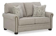 Inspired by the past but rooted firmly in the present, this loveseat complements your transitional seating area. Its versatile upholstery is delightfully detailed for a subtle herringbone effect. Designer touches like decorative nailhead trim and bun legs add traditional character. With this loveseat's reliable style and comfort, all you need to do is sit back and relax.