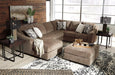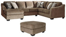 Looking to serve it up family style? Sporting clean, contemporary lines and a highly textural upholstery for a warm, cozy feel, this 3-piece sectional with ottoman delights with its city chic aesthetic and earthy appeal. Taking neutral to a new level, the sectional’s heavy textured chenille upholstery in teak brown is sure to blend beautifully into your scene. Crisp and clean box cushions and sloped, flared arms enhance the inviting feel and modern appeal. Rest assured, a generously scaled ottoman in neutral hues provides more than enough room for everyone to kick up their heels in style.