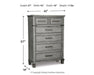 What's old is what's new with this chest. Serving up a fresh look in urban farmhouse style, the eclectic piece features a light weathered gray finish with dark aged bronze-tone bar pulls and metal straps for a casually cool sensibility. Profiled drawer frames, thick-profiled top moulding and tapered legs are the earmarks of timeless design.