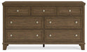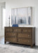 This dresser is well-suited to everyday living with its expertly balanced approach to style and function. Take the stress out of decorating—a classic medium brown finish easily pairs with existing furniture pieces. And its timeless design stays in style as you update your space, so you can effortlessly enjoy the day-to-day comforts of home.