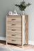 Transform your bedroom into an instant sanctuary. Pairing the look of oak grain with a unique chevron pattern, this chest of drawers introduces a touch of mid-century modern style that's sure to elevate your space. Catering to your busy lifestyle, this chest is ready to assemble in the comfort of your home.