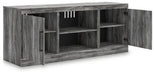 Effortless contemporary style and must-have entertainment space go hand in hand with this TV stand. Its easy-to-access media storage brings another layer of function to the clean-lined design. Big on space without being bulky, the stand accommodates flat screens with ease. Consider the optional fireplace insert (sold separately) for ambiance, warmth or both.