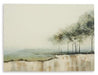 Take in the tranquil ambiance of this wall art. A muted background, in calming shades of beige, green, black and blue, gives the impression of fog rolling in. Beautifully finished with hand-painted embellishments, this peaceful landscape gives your decor a simply serene upgrade.