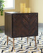 Keep things contemporary cool with this accent cabinet. Its dark brown finish and goldtone metal hardware lend an urban touch. The chevron patterned door front adds geometric flair, making this storage solution a must-have.