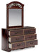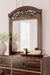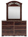 - Glossy reddish-brown finish over replicated cherry grain, paired with faux stone
