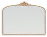 The delicate goldtone framing of this accent mirror adds a sense of stately elegance to your decor. Well-suited to traditionally inspired rooms, it lends a romantic feel to the space above a console or dresser. Reflecting your taste for timeless styling, the mirror is topped with an exquisitely detailed adornment.