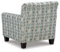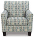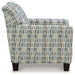 This accent chair has the corner on casual contemporary style and everyday comfort. Chic and subtly innovative, its colorful geometric upholstery is a forward-thinking take on cool hues. This simple, streamlined design is sure to appeal to your relaxed approach to modern flair.