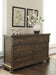 A fresh, new take on traditional style. This dresser meets today’s design tastes with beauty and grace. Its tobacco brown finish allows the natural grain of the acacia veneers to show through in an organic way. Aged brass-tone knobs dress the fronts of the roomy drawers. A hidden pull-out tray behind the top middle drawer puts your small valuables out of sight. This is a look you can appreciate for years to come.