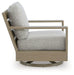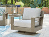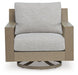 This outdoor swivel lounge chair is just what you need to get your outdoor party started. Though it looks remarkably like wood, its durable frame is perfectly suited for alfresco living. Grab a drink, kick back and swivel all around to take in the view. Wrapped in high-performance Nuvella+™ fabric, the cushions are as plush as they are practical.