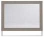 Love sleek and bold contemporary style? Drink in the beauty of this dresser with mirror. Its eye-catching details include glam glitter accents and the look of leather grain with a subtle gray finish. Large-scale linear handles, in a sophisticated champagne chrome tone, play perfectly with the streamlined aesthetic. This storage piece is a simply stunning way to achieve the bedroom of your dreams.