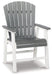 Pull up a chair on the back deck or poolside and gather around for good times. These two-tone outdoor dining chairs have sturdy legs in crisp white, with the arms, seat and back in a cool shade of gray. A slatted seat and back allow drainage to prevent rainwater buildup. Designed to withstand harsh weather, this comfortably casual outdoor duo is made with durable MEGA TUFF™ HDPE material that won't chip, rust or peel.
