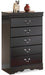 This chest of drawers is the epitome of traditional decor. Louis Philippe-style moulding dates back to the mid-19th century when furnishings were lavish yet somewhat simple. Luxe finish adds a slightly modern touch. Five smooth-glide drawers beautifully accommodate your wardrobe.