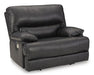 Striking form, meet contemporary function. This power recliner combines your ideal comfort features, like one-touch reclining and adjustable headrests, into one sophisticated package. With a design defined by the luxe look of black leather, this recliner pairs beautifully with your uncompromisingly posh aesthetic.