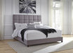 Serenity now. This king upholstered bed is sure to awaken a love for modern platform styling with a softer side. Plush to the touch and so easy on the eyes, a pale beige fabric hugs the bed—from the chic headboard with square button tufting, to the low footboard and side rails, emanating the calming mood you long for in the bedroom. Mattress and foundation/box spring sold separately.