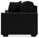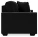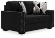 Raise your standard of living with this loveseat in onyx black. Reserved exclusively for those with a penchant for high-glam home decor, this ultra-chic loveseat is dressed to impress with a clean-lined profile, 2-over-2 cushion styling and sleek track arms punctuated with nailhead trim. Easy on the eyes and alluring to the touch, this decidedly contemporary loveseat is covered in a low-pile soft velvet that’s impossible to resist. Abstract-patterned throw pillows enhance the posh appeal.