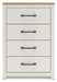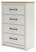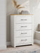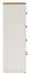Create a serene countryside retreat with this chest of drawers. The two-tone design effortlessly adds farmhouse style, while framed drawer fronts with pewter-tone handles enhance its charming appeal. Looking for furniture that offers storage and a peaceful escape from your daily routine? This piece is just what you need.