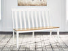 Casual style with substance. This double dining chair's two-tone finish of classic white and butcher block oak veneer adds a relaxed vibe to a delicious design. The curved shape of its bent slat-back frame offers a sense of modern farmhouse style, while the contoured seat adds comfort. Sit back and cozy up in charmingly fine fashion in your informal dining room or eat-in kitchen.