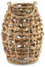 With its woven natural rattan and open-and-airy design, this lantern appeals to those turned on by a natural, bohemian sense of style. Holds one flameless pillar candle (not included).