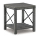 Open the door to modern farmhouse style with this square end table set. The beautiful woodgrain look and classic crossbuck metal accents are a cool touch, while the lower shelf provides surface space for fashionable home accessories.