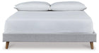 Simple living and streamlined design come together in one exceptional piece with this elegant platform bed. It's constructed with a low-profile upholstered frame, along with sturdy slats that support your mattress without the expense of a foundation or box spring.