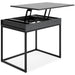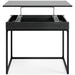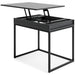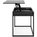 Elevate your home office with this simply sensational lift-top desk. Pairing a dark wood grain look with a black metal base for modern appeal, this minimalistic desk is dressed to impress in a no-muss, no-fuss way. Small storage bins underneath the sleek lift top bring added function.