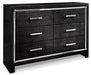 - 6 smooth-gliding drawers with faux linen lining and large chrome-tone pulls with faceted details
