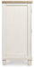 This dresser elevates the art of modern farmhouse design. Its two-tone aesthetic blends antiqued white and light grayish brown for a charming finish. Framed drawer fronts and windowpane cabinets lend a country feel. Conveying a feeling of relaxed comfort, the dresser is sure to carry you away to a dreamy time and place.