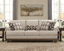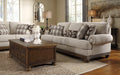 True classic character comes to life in this sofa. Set back pleated rolled arms and warm brown exposed frame with bun feet are beautifully traditional. Lovely detailing carries itself through the herringbone weave in the soft upholstery. Seat cushions reverse to maintain durable comfort. Vintage-inspired jumbo nailhead trim graces the design. Plaid and botanical pillows in dark brown are a timeless touch.
