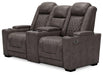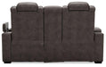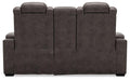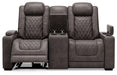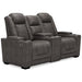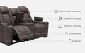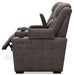 This power reclining loveseat in trendy gray is proof of just how far recliners have come when it comes to form and function. Ultra cool and contemporary, this fully loaded power reclining loveseat makes it so easy to social distance and make home your haven. Dressed to impress with diamond stitching inspired by sports car interiors, this reclining loveseat is covered in a fabulous faux leather with pebbled effect for authenticity. High-tech advancements include a one-touch power control with Easy View™ adjustable headrest and USB plug-in. Hidden storage compartments in the armrests and console are a welcome touch.