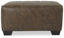 Merging cool looks with a warm, cozy feel, this decidedly modern ottoman is the ultimate compromise. Wrapped in a heavy-duty faux leather with weathered treatment and contrast stitching, this upholstered ottoman works great in lieu of a traditional coffee table when you top it with a stylish serving tray.