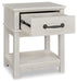 Clean lines and a white stained color add light to your room with this nightstand. The drawer and open shelf allow for versatile storage or display...