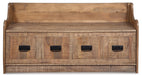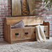 Load up on vintage charm with this solid wood accent bench. Sporting faux drawer fronts adorned with black bail pulls, this handy-dandy bench includes a hinged seat revealing underlying storage. What a quaint choice for an entryway or mudroom.