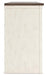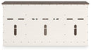 • Textured antiqued white finish with contrasting weathered gray top