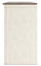 Whether your style is farmhouse fresh, shabby chic or country cottage, you’ll find this TV stand perfectly in tune. Its two-tone finish pairs a trendy textured antiqued white with weathered gray for that much more quaint character. Charming elements include crossbuck-adorned cabinet doors with glass inlays for peek-through flair. Ample storage space and cutouts for wire management nicely accommodate your media needs.